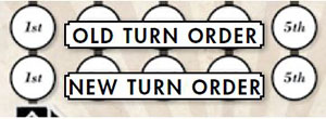 In this phase, each player will get one new card. First, move all the Turn Order discs up to the second row to show the old turn order.