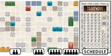 rectangle, as illustrated below. Place the Tramways Schedule board to the right of the map, multiplayer-side-up.