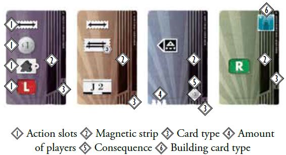 All cards of the game represent Tickets and may be used to move any Passengers on the map. So, most of the cards have a magnetic strip to show that it can be used as a Ticket to move a Passenger.