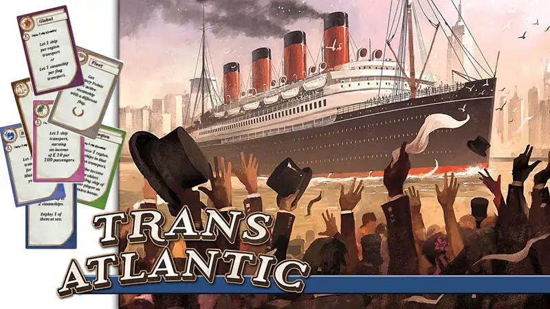 In Transatlantic, 2 to 4 players lead their own shipping companies, which transport freight, mail, and passengers around the globe. They purchase new steamships from the market, each of them historical with their individual technical data (tons, knots etc)..