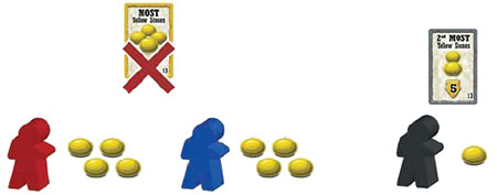 Award the 2nd MOST Stones Bonus cards: The player who has collected the second most amount of a stone color is awarded the 2nd Most Bonus card for that color.