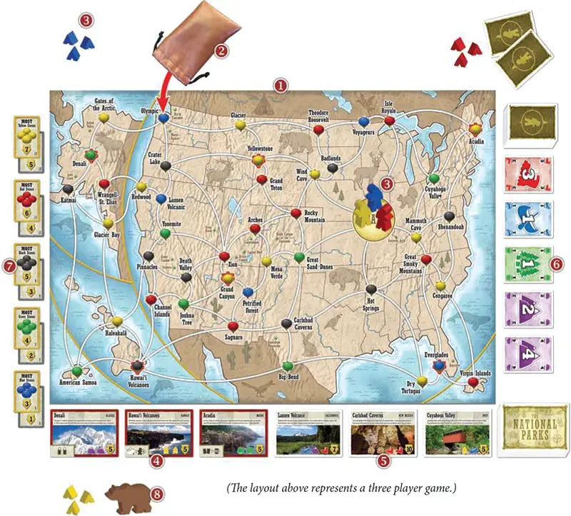 Give the First Player token to the person who last visited a national park, they will take the first turn of the game.