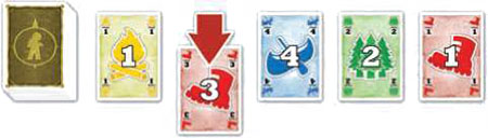Example: Since four mountain cards are showing, all five face-up Trek cards are immediately discarded and 5 new cards are flipped face up.