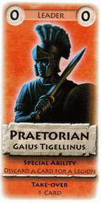 If Gaius Tigellinus is played during a faction take-over, the new controlling player may discard a card from his hand in exchange for one legion.