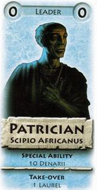 If Scipio Africanus is played during a faction take-over, the new controlling player immediately receives 10 denarii from the stock.