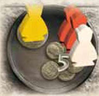 Subsequent players who place followers on the coin bowl that round take 5 denarii per figure placed, again taking them im- mediately upon placement.