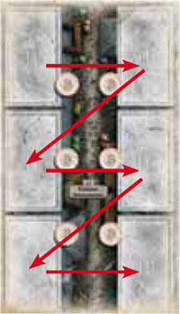 In Phase 1: Card Placement, cards from the draw pile are placed on the game board in the rectangular, marble-textured card fields according to the region-specific rules below. The "Card Placement Example" diagram on the previous page also illustrates the correct placement.