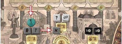 The player chooses a Trick from the Dahlgaard Residence, puts it on an empty Trick slot in his or her Workshop, and places an unused Symbol Marker on it.
