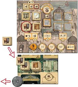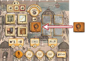 Each Trick has a certain Component requirement. Until these Components are collected, the Trick cannot be Prepared, and thus cannot be Performed in the Theater. The Market Row is the place where these Components can be obtained - for a price.