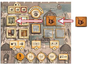 If players need a Component which is not currently available in the Market Row, they have to Order it. For 1 Action Point, a player may place any Component from the supply on an open slot in the Order area (as long as the same Component type is not already there).