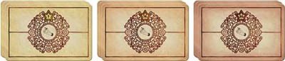 Shuffle each of the three Power decks (yellow, orange and red), then place them face down next to the Main Game Board where players can conveniently reach them. Similarly to Trick cards, Magician Powers of different colors also have Fame Thresholds of 1, 16 or 36 (printed in a star on each side of the card).