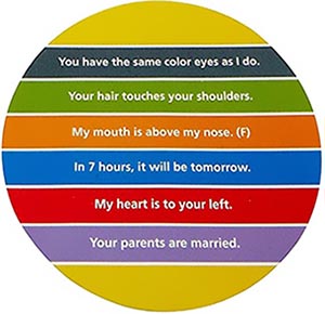 If you are the youngest player, begin a round by reading any statement from your first card. You will be the moderator for this round, so you won't respond to the statement.