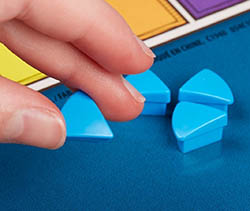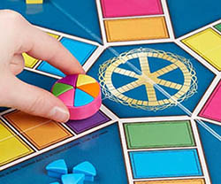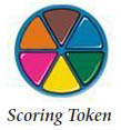 There are six spaces around the board with a picture of a large colored wedge. If you answer a question correctly when you land on a wedge space, place a matching-colored scoring wedge into your scoring token! Don't forget to move your track pawn!