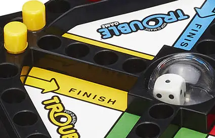 Be the first player to move all four of your colored pegs around the gameboard and into your FINISH LINE.