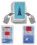 One player turns over the top two Tide Level cards from the face down pile and places them face up on opposite sides of the deck.