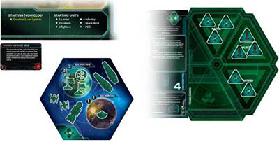 Each player takes the starting technology and starting units listed on the back of his faction sheet. Each player places the technology cards faceup near his faction sheet and the starting units in his home system. If a player has multiple planets in his home system, it is recommended that he place his space dock and infantry on the planet with the highest resource value.