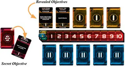 Secret objectives: Each player begins the game with one secret objective that he may look at but must keep hidden from other players. A player can score his own secret objectives but not those belonging to other players.