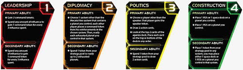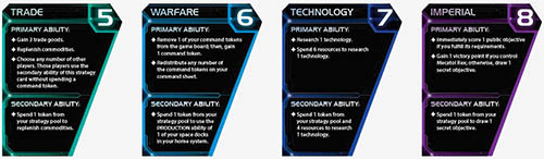 Each strategy card has both a primary ability and a secondary ability.