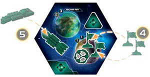 2. Commit ground forces: The active player decides which ground forces he wishes to land on planets. To do so, he takes any of his ground forces that are with his ships in the space area of the active system and places each one on the planet he wishes to invade.