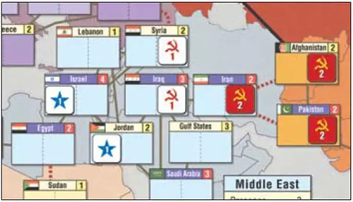 US Action Round 4: Arab-Israeli War (2 Op) as Influence points. Adds 1 to Israel (4C/0) and 1 to Jordan (2C/0).