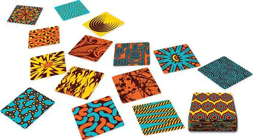 At any time, as soon as anyone spots 2 identical patterns, they must quickly put a hand (or finger) on each of the 2 cards to win the pair. (Use both hands).