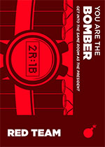 The character deck consists of the President card, the Bomber card, and an equal number of Blue Team and Red Team cards. There will be one character card for each player in the game.