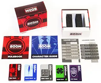 In Two Rooms and a Boom there are 2 teams and 2 rooms. The 2 teams are the Blue Team and the Red Team. The Blue Team has a President. The Red Team has a Bomber.