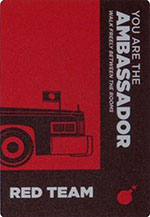Before the game begins, but after character cards have been dealt, you must publicly announce "I am an Ambassador!" and keep your card publicly revealed for the rest of game. This public reveal is permanent.