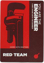 When playing with the Engineer, the Red Team has the following additional win condition: the Bomber must card share with the Engineer before the end of the game or the Red Team loses. At the end of the game, the Bomber will be asked if he/she card shared with the Engineer. At that time both players will verify or deny having card shared.
