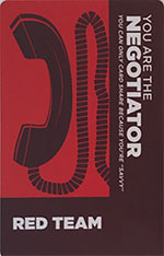 Any player that card shares with you must trade in their character card for a Red Team card before the beginning of the next round and before revealing any part of their card to another player.