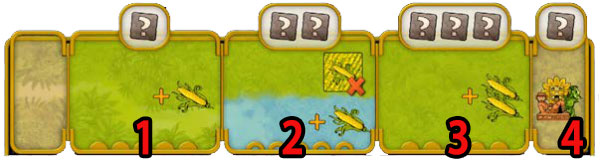 Associated with the Palenque gear are groups of four spaces representing fields in the jungle that can be cleared and farmed. Place one Corn Harvest Tile on each field.