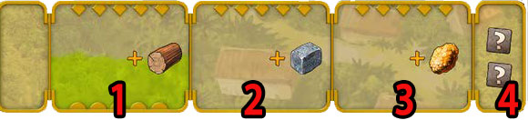 Players are rewarded with resources and crystal skulls. The items you receive depend on your position on the temples. For each temple, you get the resource or crystal skull depicted on your current step, as well as all resources and crystal skulls depicted on lower steps of that same temple.