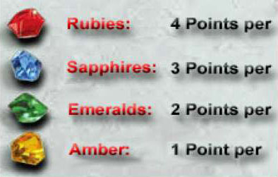 The game ends after 9 rounds - when all the gems in the display are gone. Now, everyone adds up the values of its gems. (See chart below)