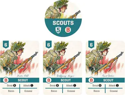 Combat cards represent the soldiers in your platoon, and each is associated with a combat counter.