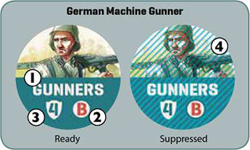 Ready/suppressed: the status of the unit. If the counter is face down, it is suppressed and cannot take other actions until it has been flipped to its ready side.