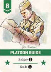 The Platoon Guide prevents straggling and enforces orders concerning cover, concealment, and discipline. In the game it is a versatile card, letting you move any combat counter in the field or add any card you might need from the supply.