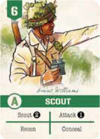 Sniper are expert riflemen and effective infiltrators. This card has the highest attack and defense value in the game and is able to move through areas not yet scouted, making it an excellent unit for taking out important enemy targets.