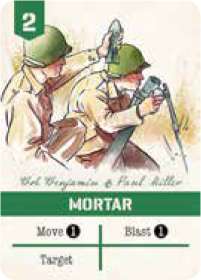 The 60mm mortar provided additional firepower for leading platoons. It is one of the most powerful cards in the game. It is slow to set up, requiring a separate action just to target a tile, but once ready it is hugely effective at taking out concentrated enemy forces and avoids any range penalties when firing.
