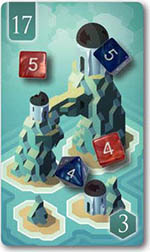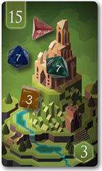 When you roll a 1, 2, or 3 during either phase, immediately take a Stone of your choice from the Ruin you rolled on and add it to your tableau. If there are no Stones on the Ruin, you must draw a random Stone from the cloth bag and add it to your tableau.