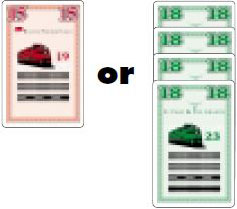 Note: If the four face up share cards are from the same railway company, they are immediately removed from the game and put face down in the box.