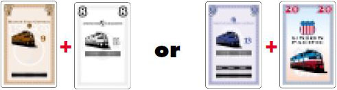 Note: After drawing a card, a player may exchange any share card from his hand for a card from the Union Pacific stack (if there are still cards available there).