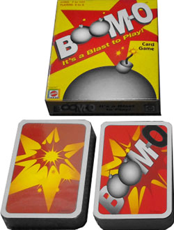 Boom-O! When this card is played, all other players, following the direction of play, must immediately discard a HOLD card to stay alive. If they don't have a HOLD, they must flip a "Ticking Time Bomb" card. Running total resets to 0.