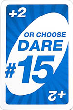 Choose any color. Then, the next player must choose to either draw 2 cards, or do the dare associated with the number on the card.