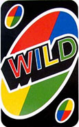 You may play a Wild card on your turn even if you have another playable card in your hand. If a Wild card is turned up at the beginning of play, the person to the left of the dealer chooses the color that continues play.