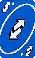 When you play this card, the direction of play reverses (if play is currently to the left, then play changes to the right, and vice versa).