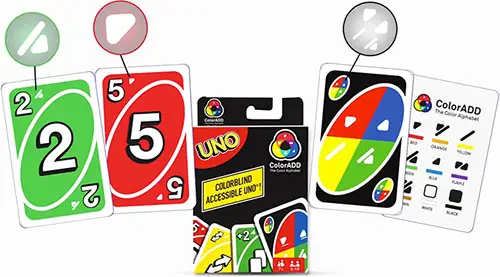 The ColorAdd color identification system uses symbols to represent different colors allowing players with ANY form of colorblindness to easily play!