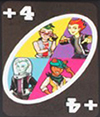 Wild Draw 4 Card - When you play this card, you get to choose the color that continues play PLUS the next player must draw 4 cards from the DRAW pile and lose their turn.