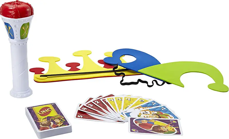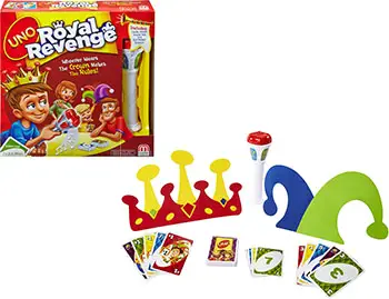 UNO Royal Revenge requires 2 AAA size Alkaline Batteries (not included). Use only Alkaline Batteries. Toy may not function with other types of batteries.