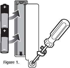 Install 2 AAA size Alkaline Batteries in compartment as shown. (See Figure 1).