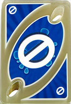 When you play this card, the direction of play reverses (if play is currently to the left, then play changes to the right, and vice versa). This card may only be played on a matching color or on another Reverse card.
